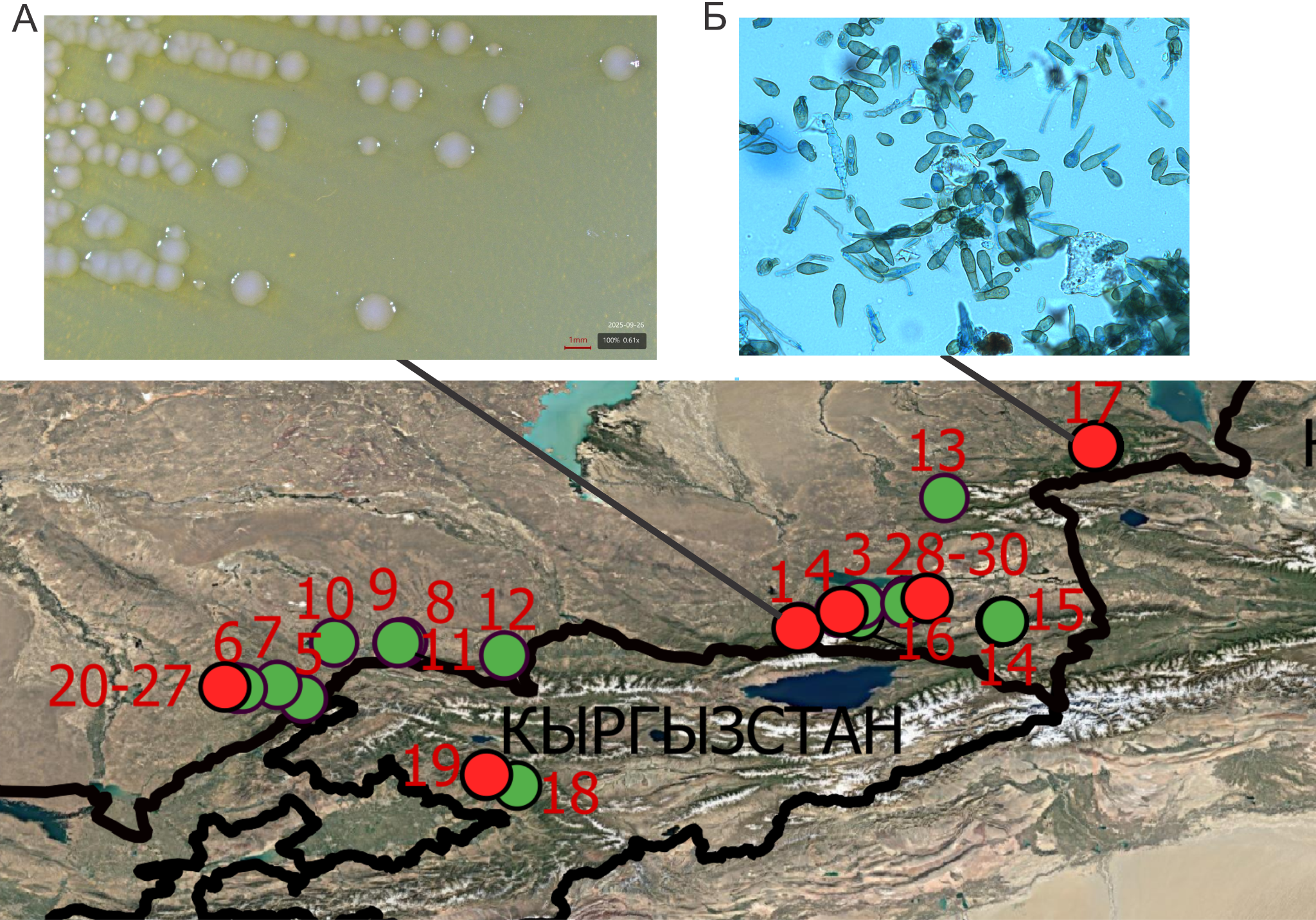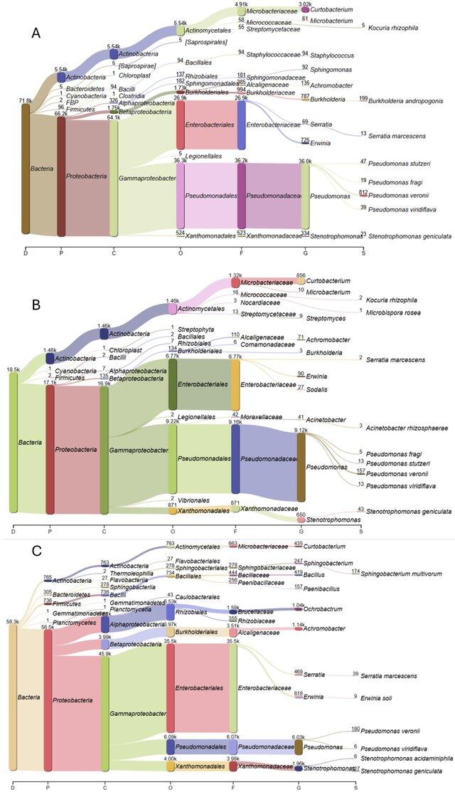 2) Өсімдіктердің жер үсті бөліктеріне метагеномикалық талдау жүргізіліп, алма, алмұрт, долана және шетенге әсер ететін негізгі бактериялық және саңырауқұлақ қоздырғыштары анықталады. Қазақстанда бұрын зерттелмеген жаңа бактериялар мен саңырауқұлақтарды анықтау, ілеспе микрофлораны және аралас инфекцияны анықтау. Аралас инфекциясы бар сынамалар, соның ішінде өрт күйдіргі мен қышыма анықталады.