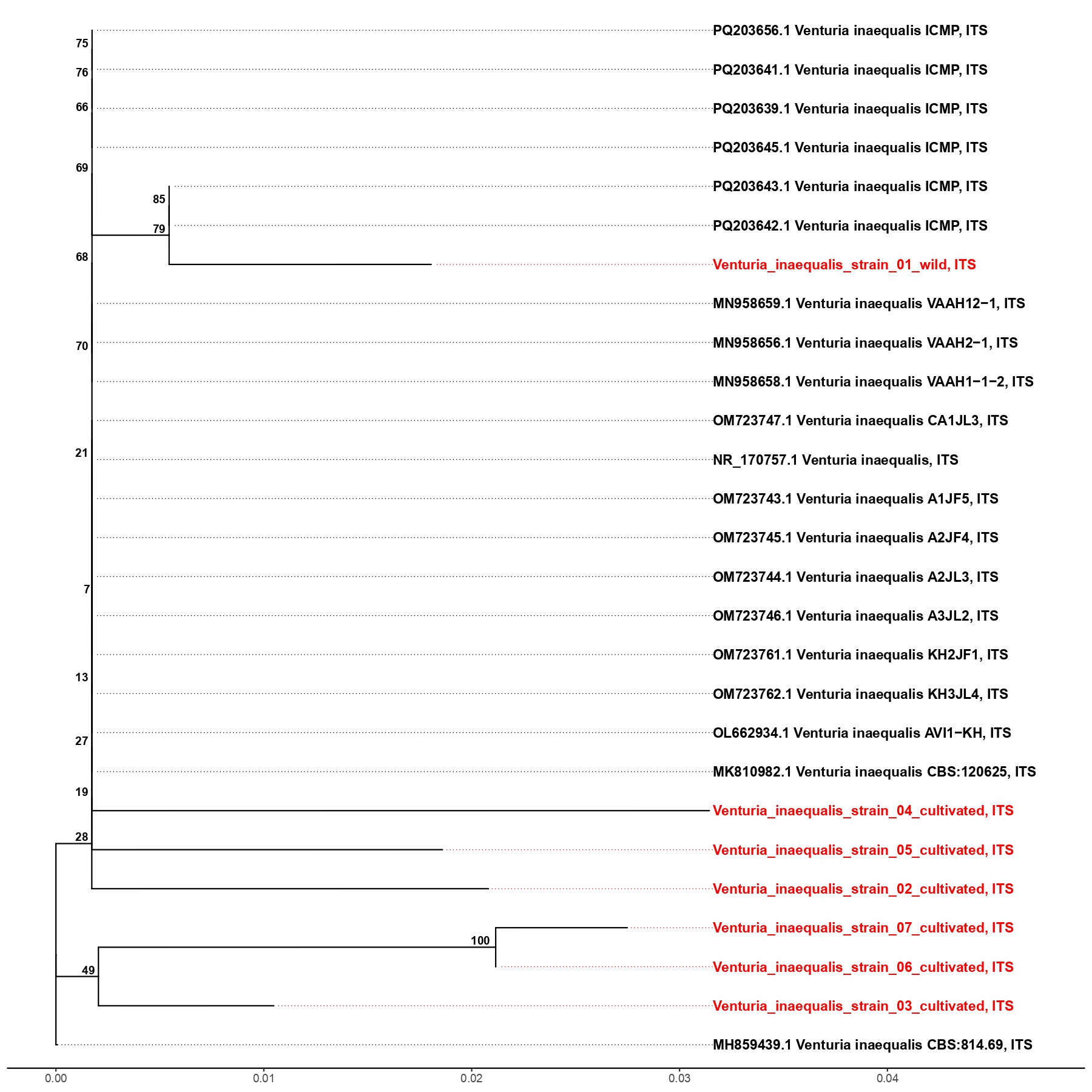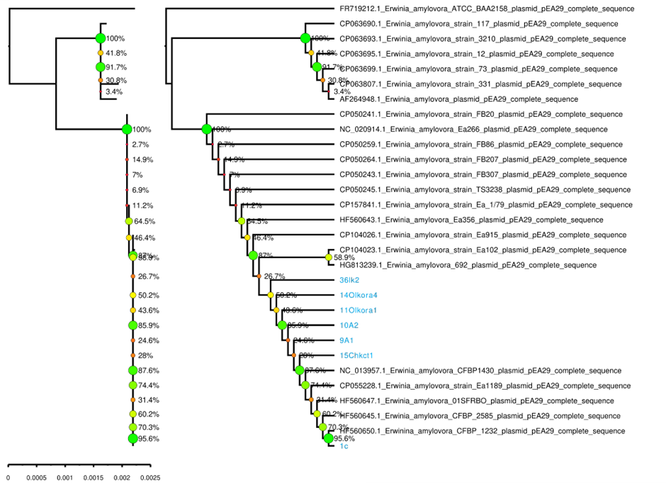 5-сурет – Erwinia amylovora изоляттарының филогенетикалық талдауы.