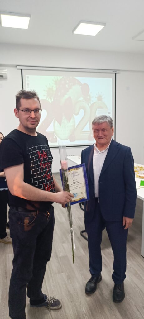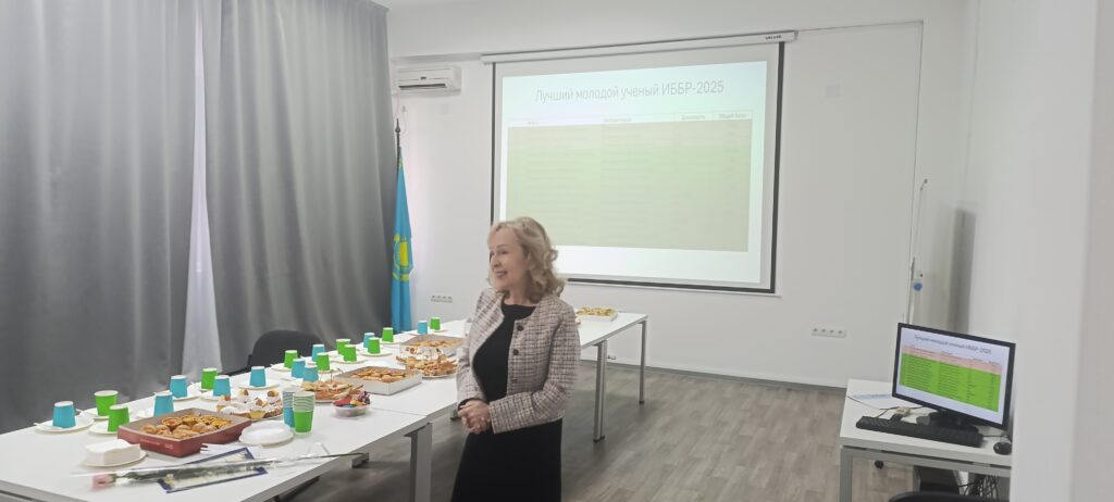 Certificates and awards were presented to the winners of the young scientists’ competition «The Best Young Scientist of the IРBB in 2025» for outstanding achievements in the development of scientific research (1st place — PhD, Alexander Sergeevich Pozharsky, 2nd place — PhD, Madina Talgarovna Kumarbayeva, 3rd place — PhD, Dias Lamzarovich Daurov). The curator of the Council of Young Scientists, Academician of the National Academy of Sciences of the Republic of Kazakhstan under the President of the Republic of Kazakhstan, Professor Erlan Kenesbekovich Turuspekov presented incentive prizes for active scientific work to the following young scientists: A.S. Pozharsky, M.T. Kumarbayeva, D.L. Daurov, Yu.A. Geniyevskaya, and M.M. Ermagambetova.