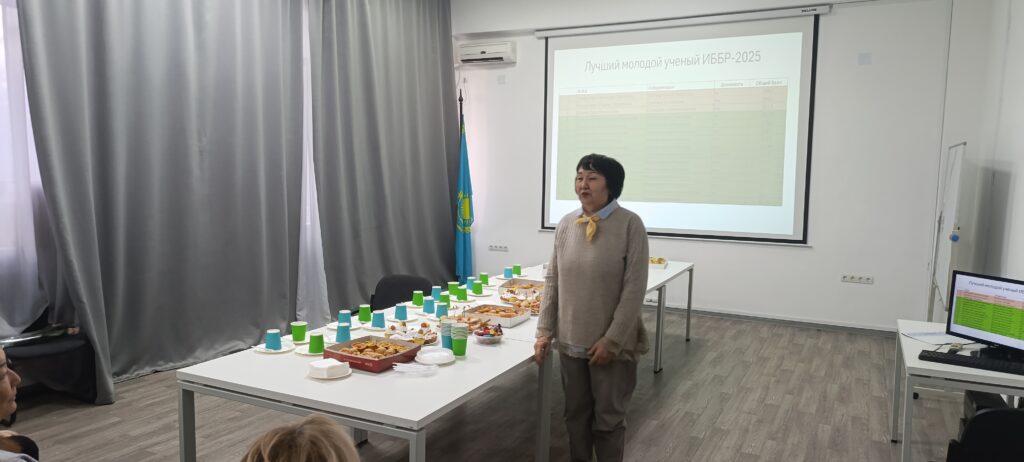 Chair of the IРBB Young Scientists’ Council, Akerke Ykylaskyzy Amalova, presented a report on the Council’s activities in 2025. On behalf of the Young Scientists’ Council and on her own behalf, she presented incentive prizes to several young scientists. During the discussion, the Council’s and Akerke Ykylaskyzy’s personal involvement in the institute’s scientific and social life was noted.