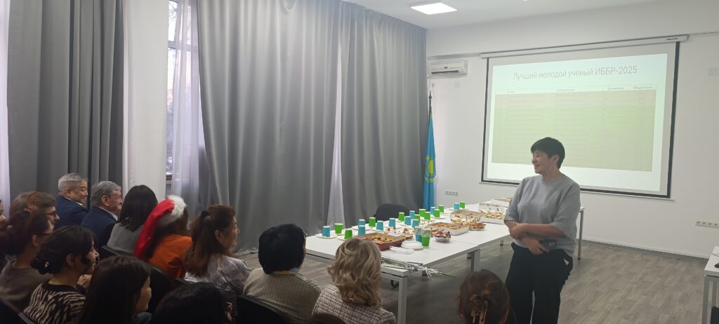 At the meeting, Director General Zhambakin Kabyl Zhaparovych summarized the results of 2025, congratulated the staff on the upcoming New Year, and thanked them for achieving high quantitative and qualitative scientific indicators. The heads of the laboratories also expressed their congratulations, noting the laboratory’s contribution to the Institute’s achievements.